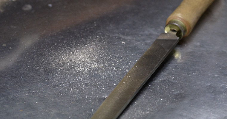 (荒目やすりと削られた地金の粉)