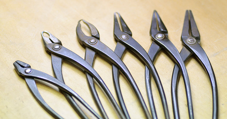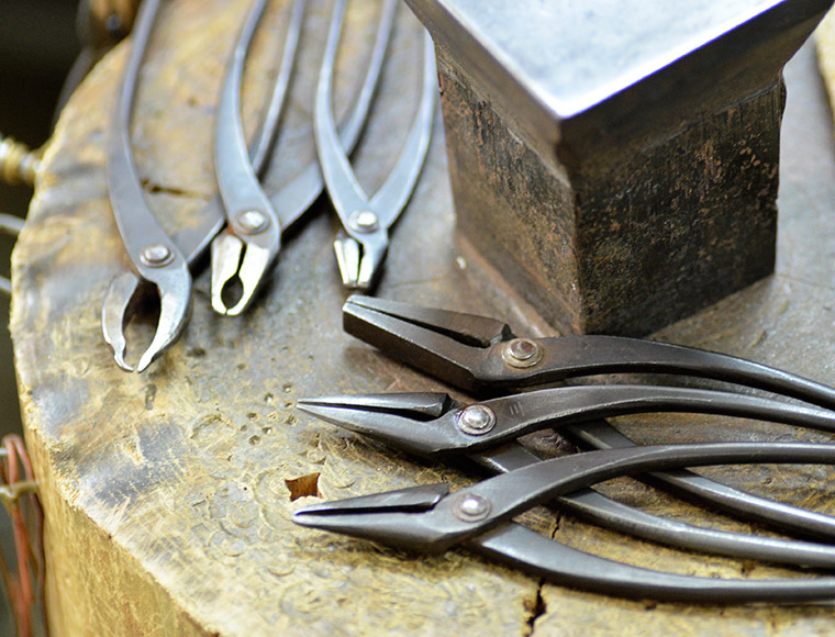 この「やっとこ」も職人自ら口先を加工して、作業をしやすいように形をつくります。自分の手に馴染むように、意思がしっかりと伝わるように。